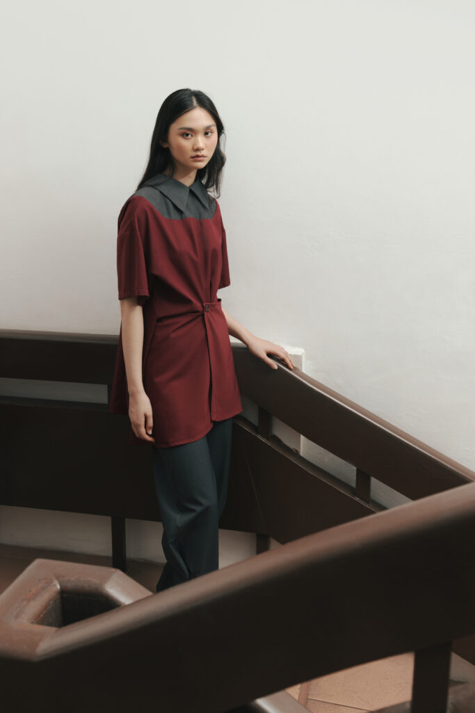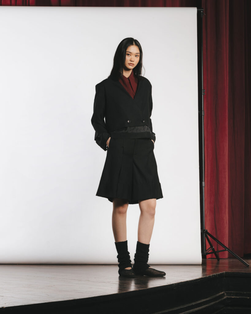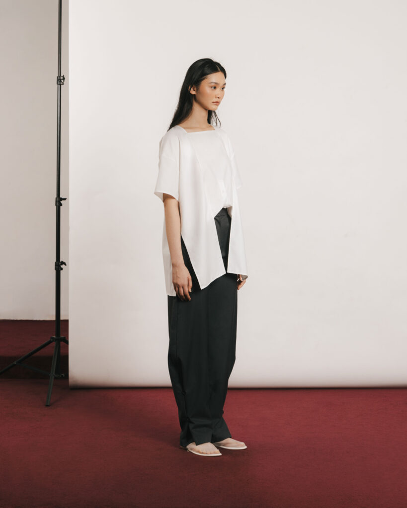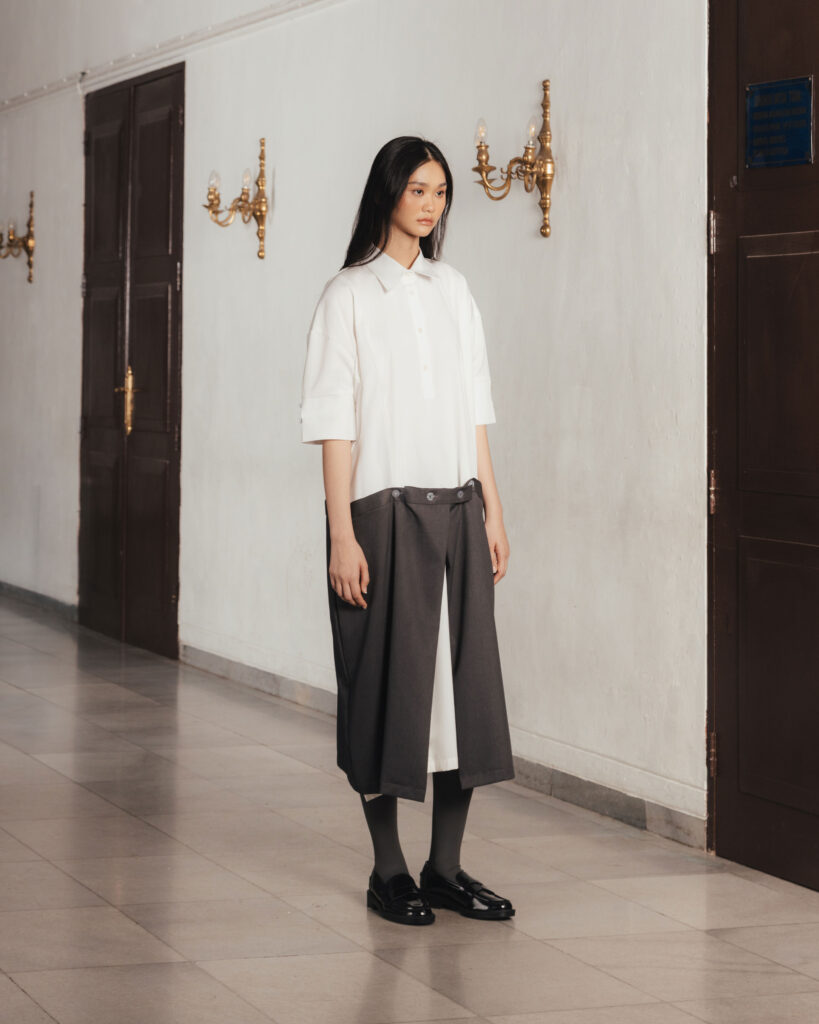 Through “LUANG”, we reminisce on the carefree aspect of our high school days. As we continued exploring adjustability, we derived inspiration from the ways we adjusted our uniforms in high school. In an environment where uniform is mandatory and style was limited by rules, students had to get creative with the ways they adjust their clothes to make them more comfortable or stylish.